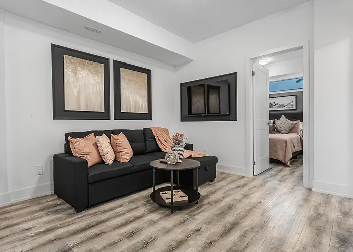W New Stylish 1Br Apartment With Bbq And Situated Close To The Falls And Can Sleep 4 Guests goście mogą korzystać z wyposażonej kuchni z piekarnikiem i zmywarką do naczyń do samodzielnego gotowania. Najbliższe lotnisko to lotnisko Hamilton-John C. Munro, 90 km od apartamentu. Odpocznij na patiach.